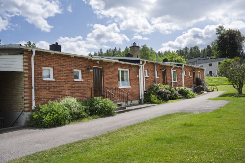 Belägen i radhuslänga med egen ingång och uteplats på baksidan.